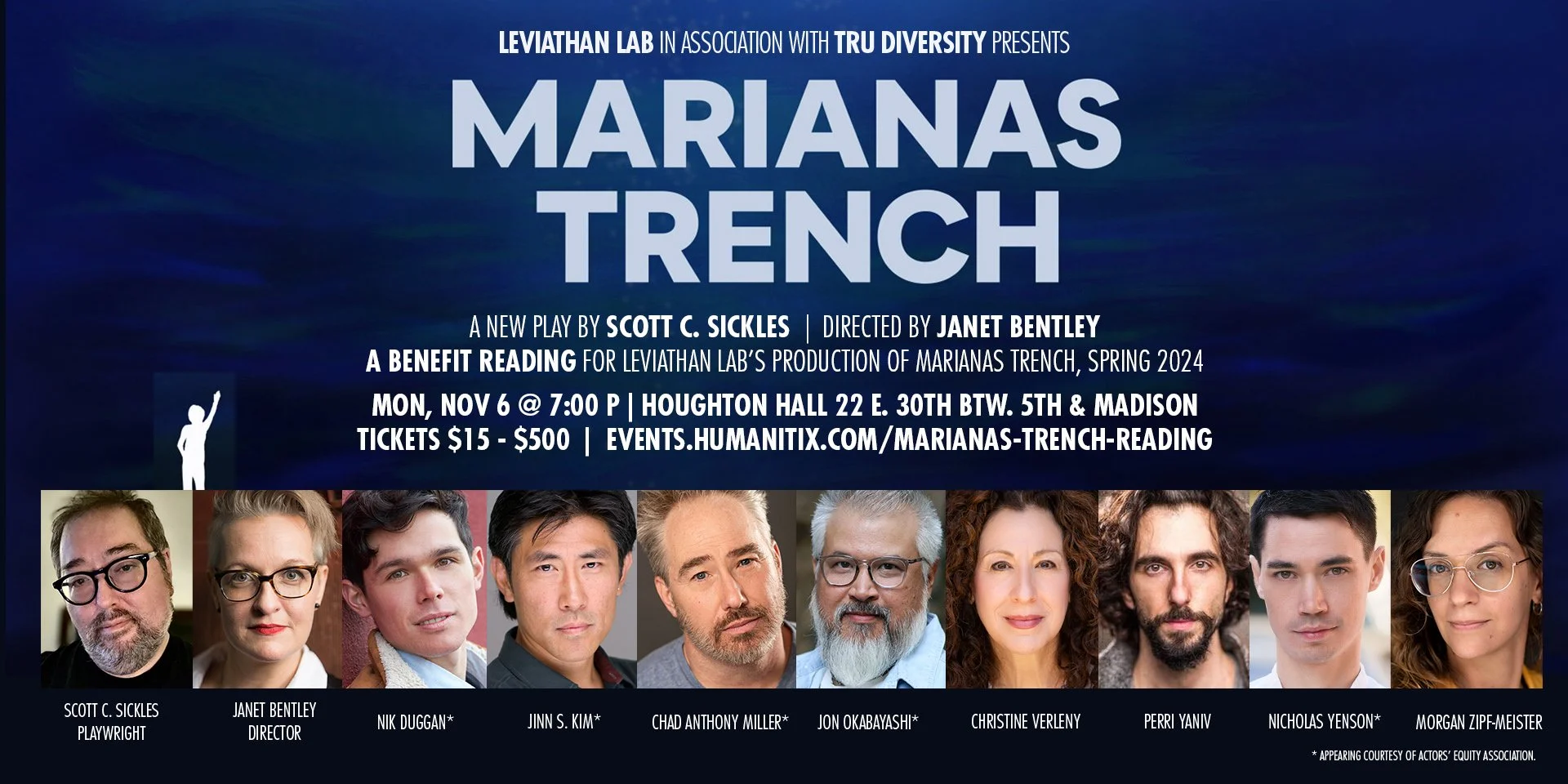 *Equity Member appearing with permission of Actors’ Equity Association without benefit of an Equity contract in this Indie Theater (Off-Off Broadway) production. Leviathan Lab’s WinterFest double bill show, including FULL CONTACT and X#*! YOU VERY MUCH, MOM, is an Equity-approved showcase production.